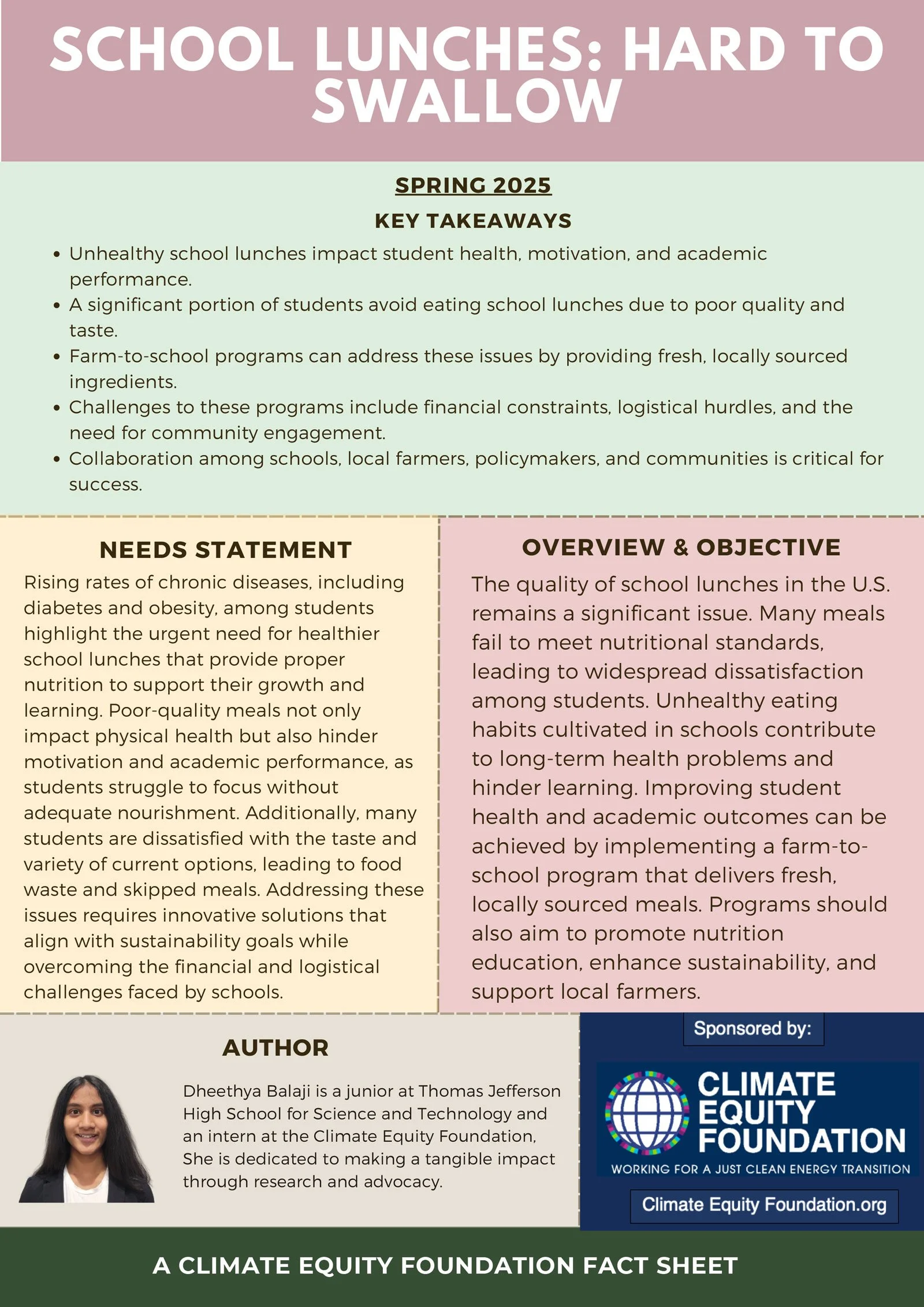 About the Author: Dheethya Balaji is a junior at Thomas Jefferson High School for Science and Technology and an intern at the Climate Equity Foundation. She is dedicated to making a tangible impact through research and advocacy.